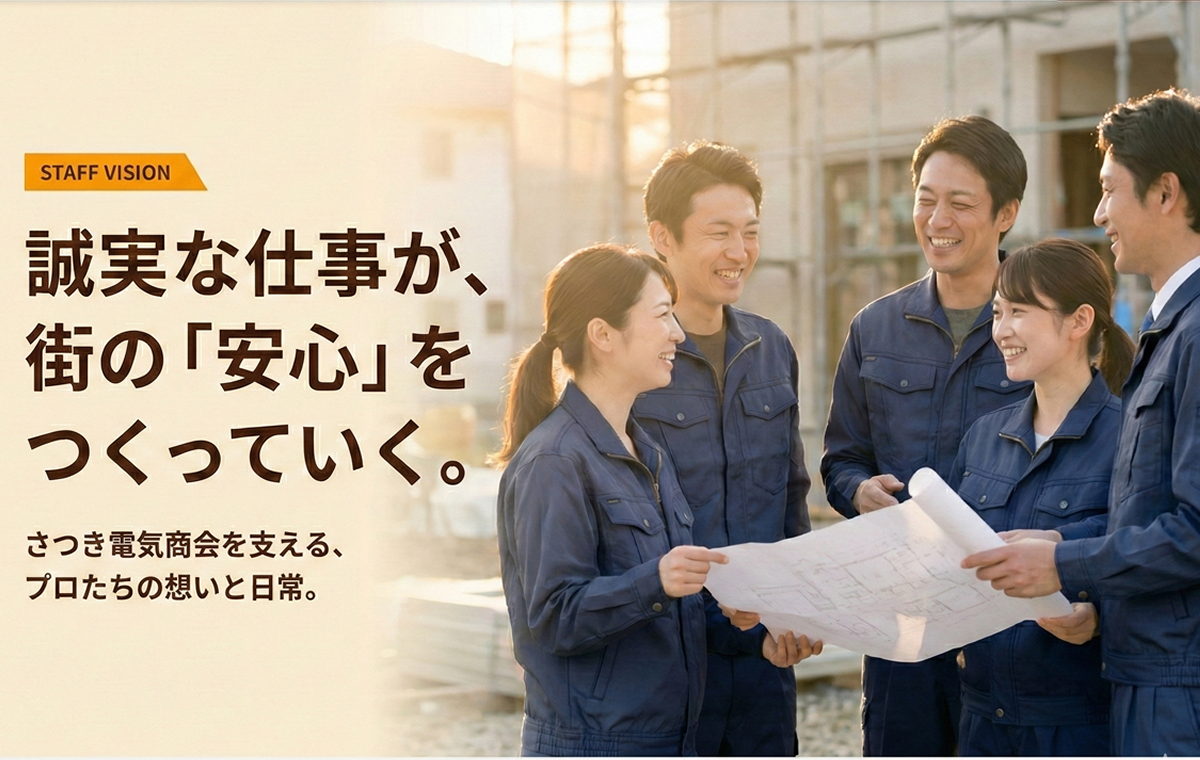 • 「信頼は誠実な仕事から。電気工事で安心を届けるプロ集団」